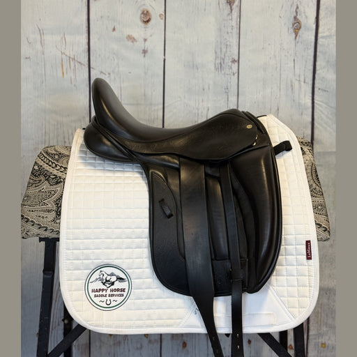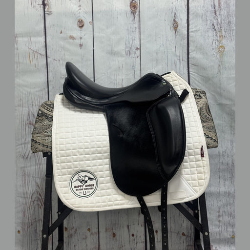 Seat Size: 17.5" Color: Black Tree Size: Medium Wide Condition: Used Brand: Amerigo Saddle Type: Dressage