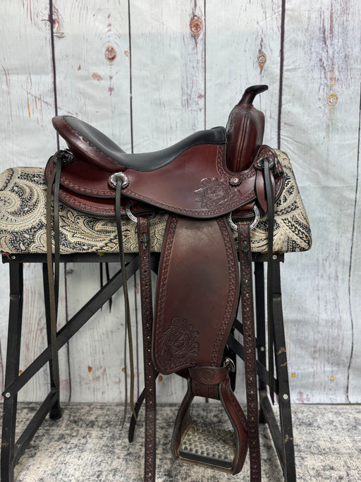 Seat Size: 16" Color: Brown Tree Size: J Tree Condition: Used Brand: Allegany Mountain Saddlery Saddle Type: Western All Around