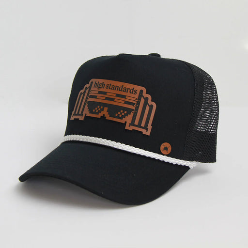 Keep those standards high, both in life and the ring. Trucker hat with chestnut leatherette patch and adjustable back closure. Patches designed, ma...