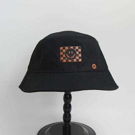 Ride Happy and you'll never have a bad day in the saddle. 90's style bucket hat with chestnut leatherette patch. Patches designed, made and hand-pr...