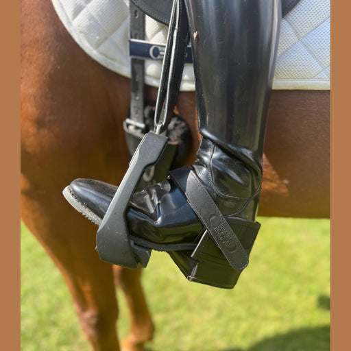 Patent Pending Design! Weight Your Feet, Train Your Seat! Would you like a relaxed and balanced seat when you trot down the center line or perhaps ...